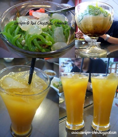 That's fat fat cendol... and if you look at the 2 glasses of drinks below... you must be thinking.. that must be orange juice... wrong.. you are so wrong.... it's ice lemon tea... drinkable but i'll try other drink next time... it's either powder type or cordial type... I prefer original ice lemon tea..