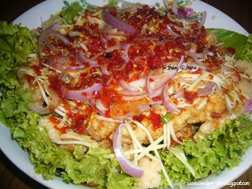 Mango fish... mango chicken would taste better but already have chicken.. so substitute with fish instead.... worst of all, not much fish choice in Giant that day.. they don even have bigger fish for me to fillet it myself... benci.. in the end have to opt for the dory fish which I personally don't really prefer due to some weird smell and taste it has... I think due to the water it was frozen with.. Good thing with sesame oil, it manage to cover slightly the smell off...