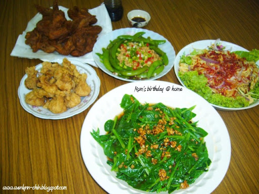 Went back last weekend for mom's birthday... suggested that I will cook for dinner instead of going out for dinner like previous years... little did I know, my mom's friends will be coming over that day.... and I cannot back off last minute... haha.. mom's friend will be returning to UK soon... so she went to my hometown to just have chit chat session with my mom and another friend who is now staying in Kulim. 3 of them previously went to England for nurses courses, training etc.... so, they are pretty much good old friends... catching up with each others progress and updates in life, at the same time trying to recall the good times they had previously... Both of her friends came to over night as they have planned to chit chat the whole night... haha...